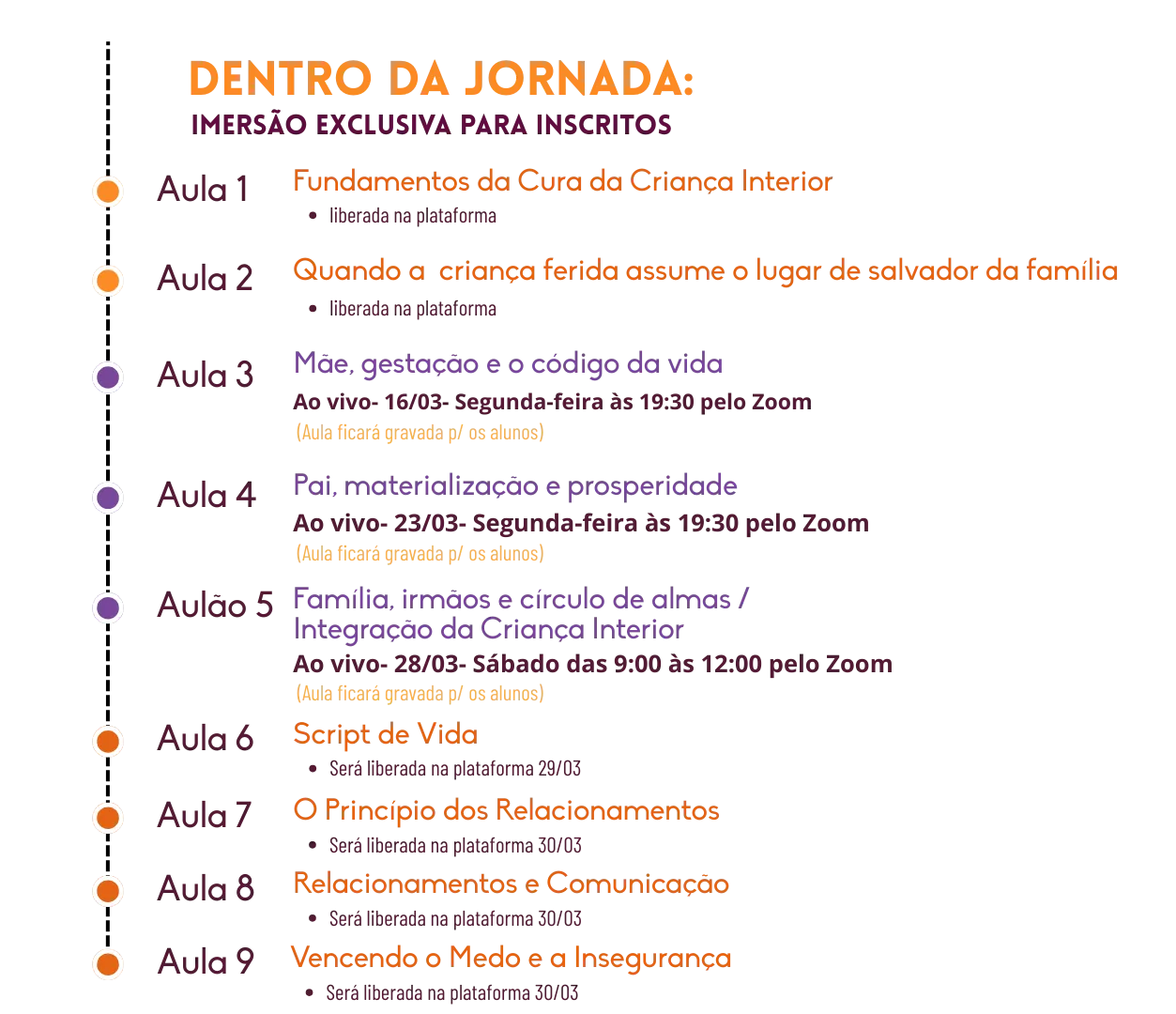Todas as aulas serão Ao Vivo pelo Zoom e ficarão gravadas na plataforma da Hotmart por 6 meses
